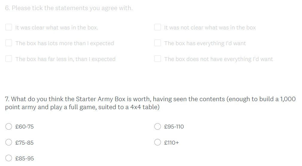 I got an odd web survey invitation from Warlord Games. Almost as an answer to Dan's wish from the last podcast it seams as if Warlord might be looking to re-sculpt the British army minis. Those units do look a bit dated in my opinion and they could do with a refresh, here are some screen shots from the survey I'm not sure how many people received this it may have been warlords entire online store database in which case most people would have seen this anyway. My thoughts along with the images below.