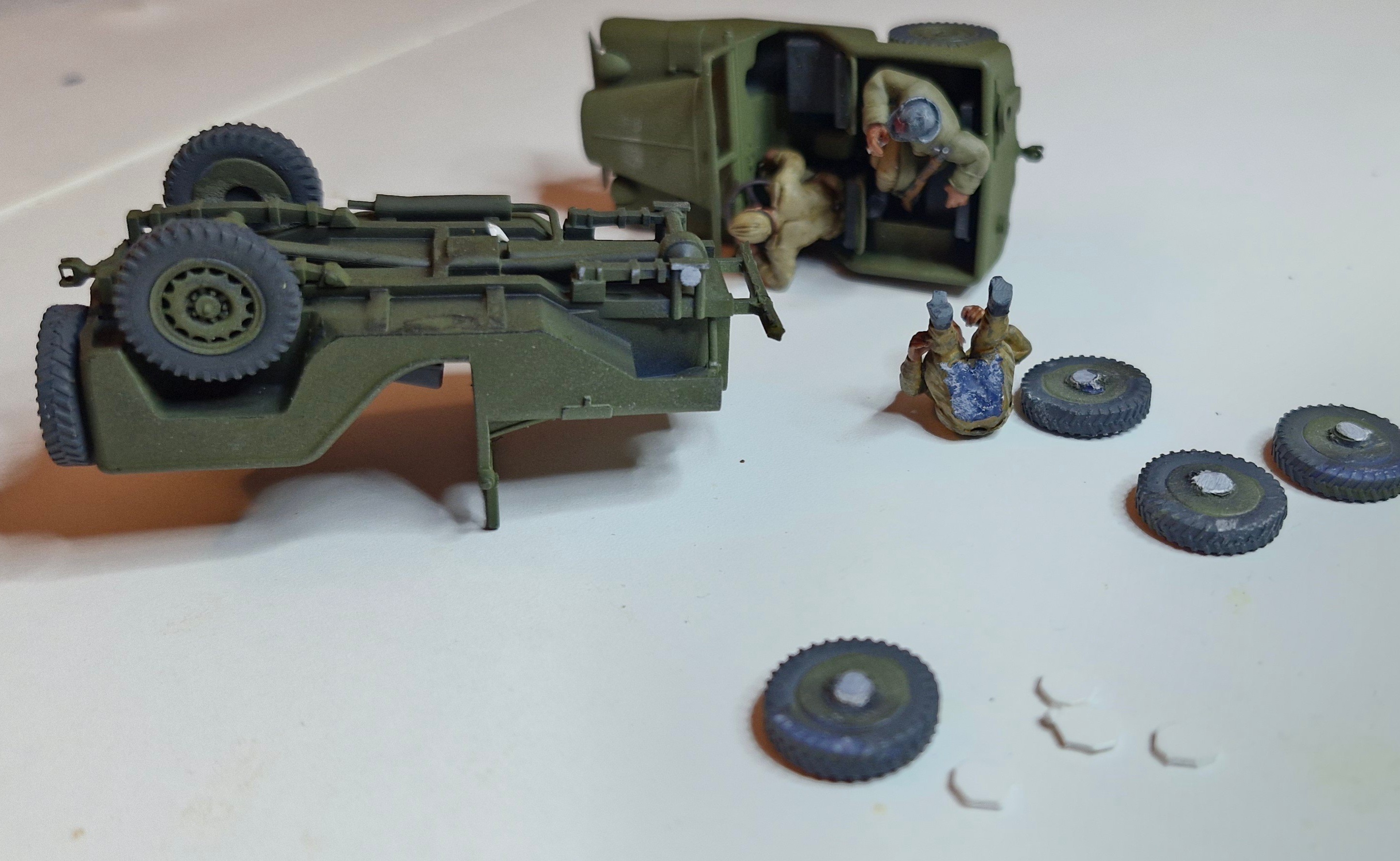 Running repairs, all 8 wheels broke off my Jeeps at the last event ????. That's the disadvantage of having perfection in scaling. Those little parts don't work when wargamers go brumm brumm