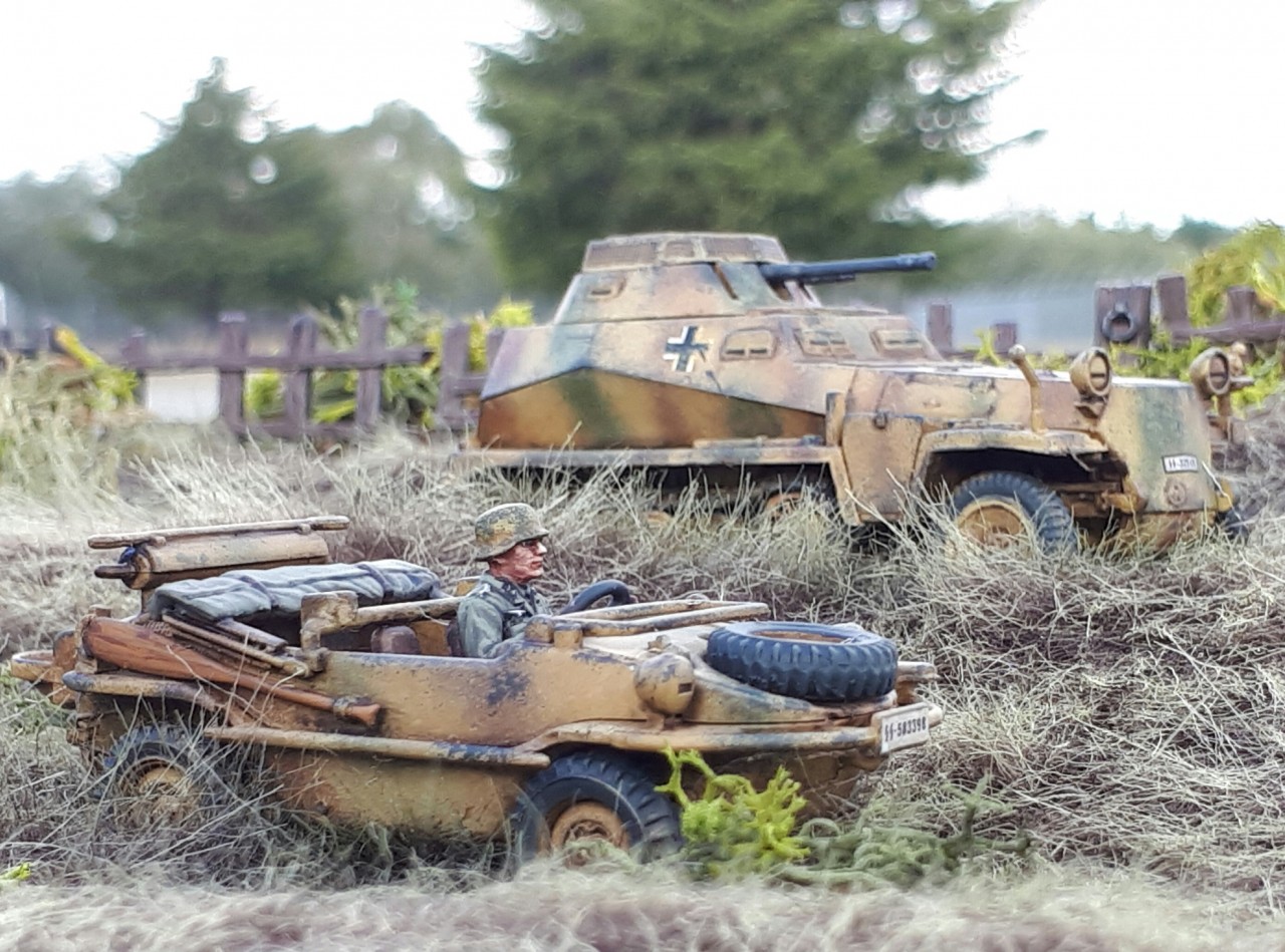 Its a shame that this schimmwagon kit didnt come with any plastic sheet to create a windscreen. I dont know if Rubicon provide that with other light vehicles. I did have some spare from warlord opel blitz kits but of course- id just used it elsewhere! never mind; at the moment mines kicked out following damage, and ill add one later if i wish.