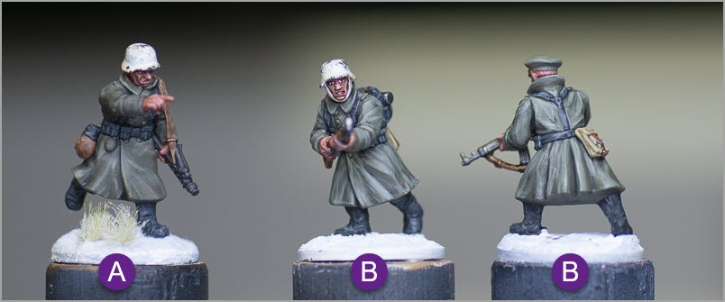 Hi everyone, yes I have been a bit quiet lately, life getting in the way of wargames, hate it when that happens. Here are three test models from the Warlord Games plastic Winter Germans boxed set.
