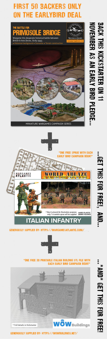 -Wargames Atlantic will be kindly supplying an Italian plastic sprue for the early bird backers from their forthcoming boxed set with each early bird book. https://wargamesatlantic.com/