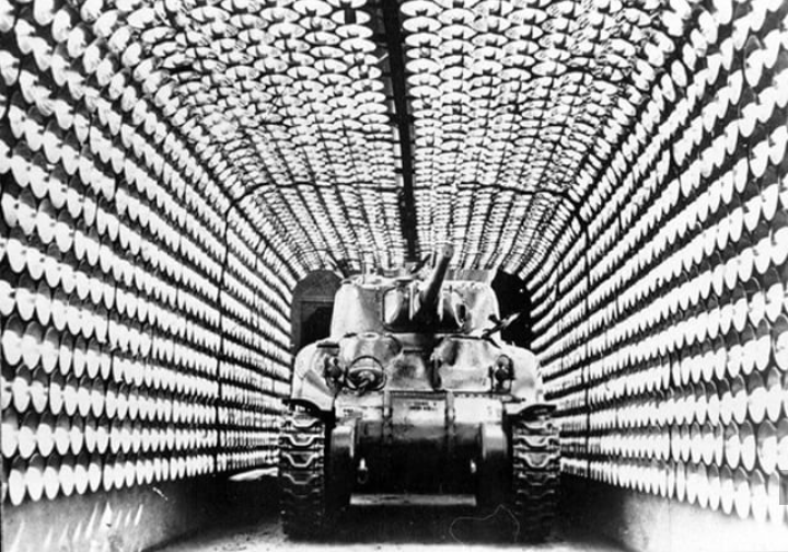 Friday photo - Drying paint on a Sherman: Most of us have, at one time, used a hairdrier to dry paint when we were in a hurry but this photo apparently shows heat lamps drying the paint on the real thing. Apparently it took 4 minutes*! (*according to some guy on the internet)