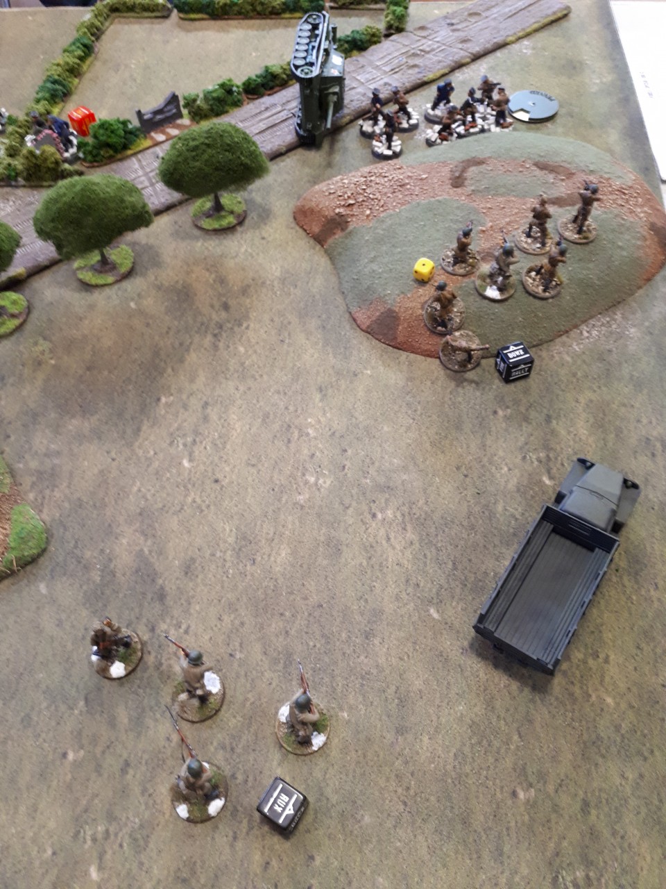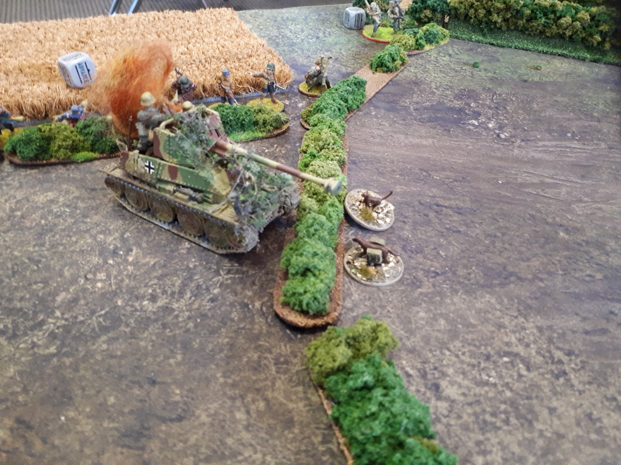 dog mines close in on their targets..whilst the burned out hulk of the SPG- that the other dog mine team has destroyed -stands witness the the battle of the grassy knoll!!!