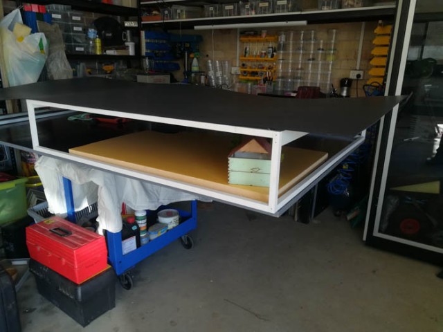 Wargaming table (with protective anti-cat cover) part 1  (see slide show)