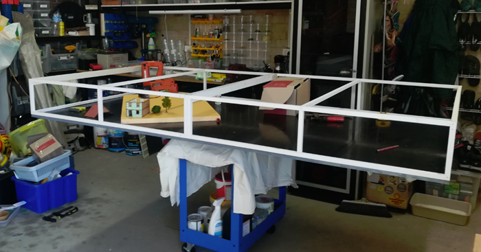 Wargaming table (with protective anti-cat cover) part 2 - supporting structure for the anti-cat/dust cover assembled. Only nail-guned my finger once and it didn't even hit the bone so a good lunchtimes work!